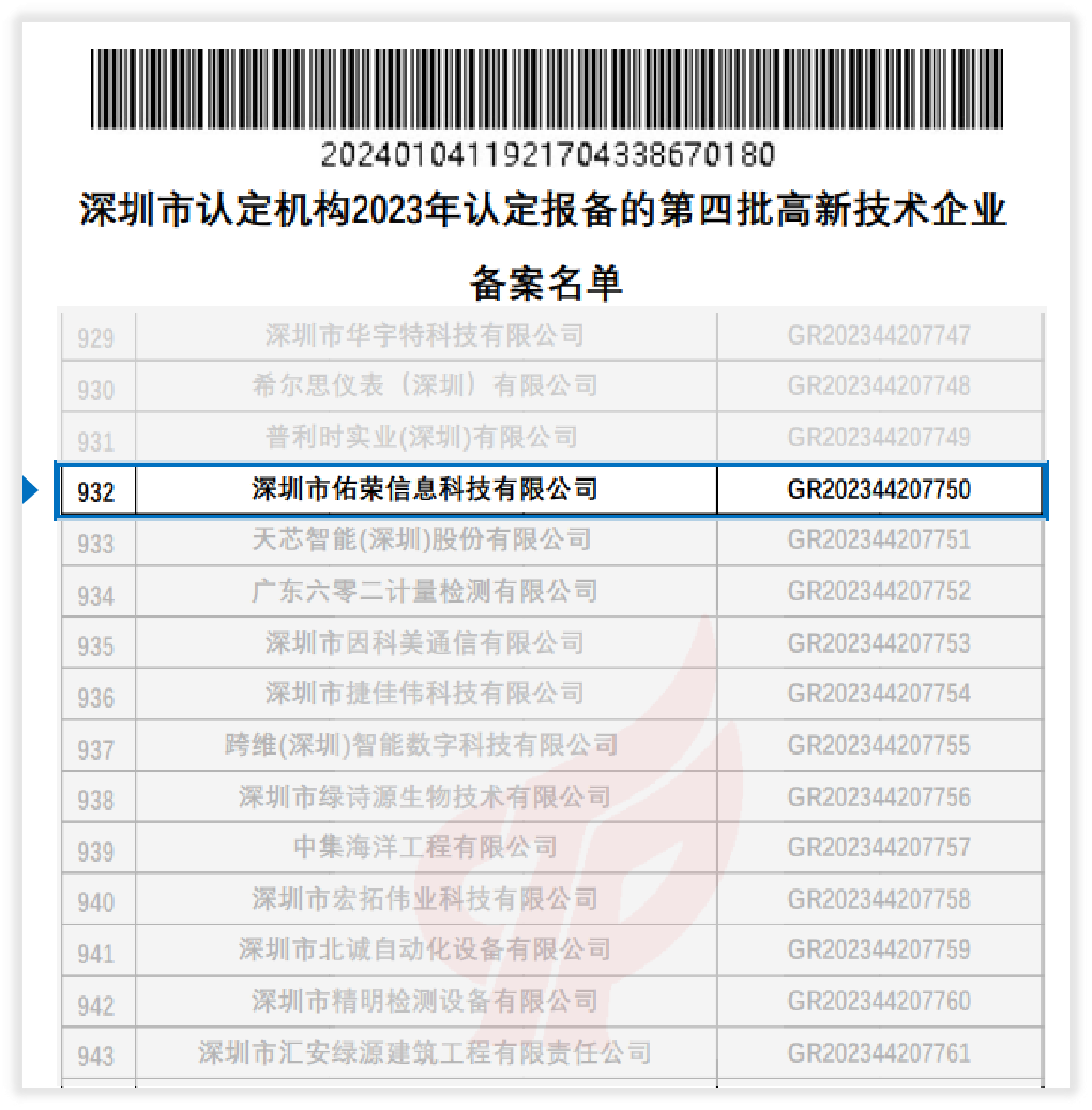 此次荣获国家高新技术企业资质证书,是对佑荣科技在技术创新和科研实力方面的高度认可。国家高新技术企业认定是对企业在科技创新能力、技术先进程度、市场竞争优势、科技成果转化能力、企业制定行业标准与技术规范等多个方面进行全面评估的重要标准。佑荣科技能够获得这一殊荣,不仅证明了在科研技术领域的领先地位,也为未来的发展打开了更广阔的空间。