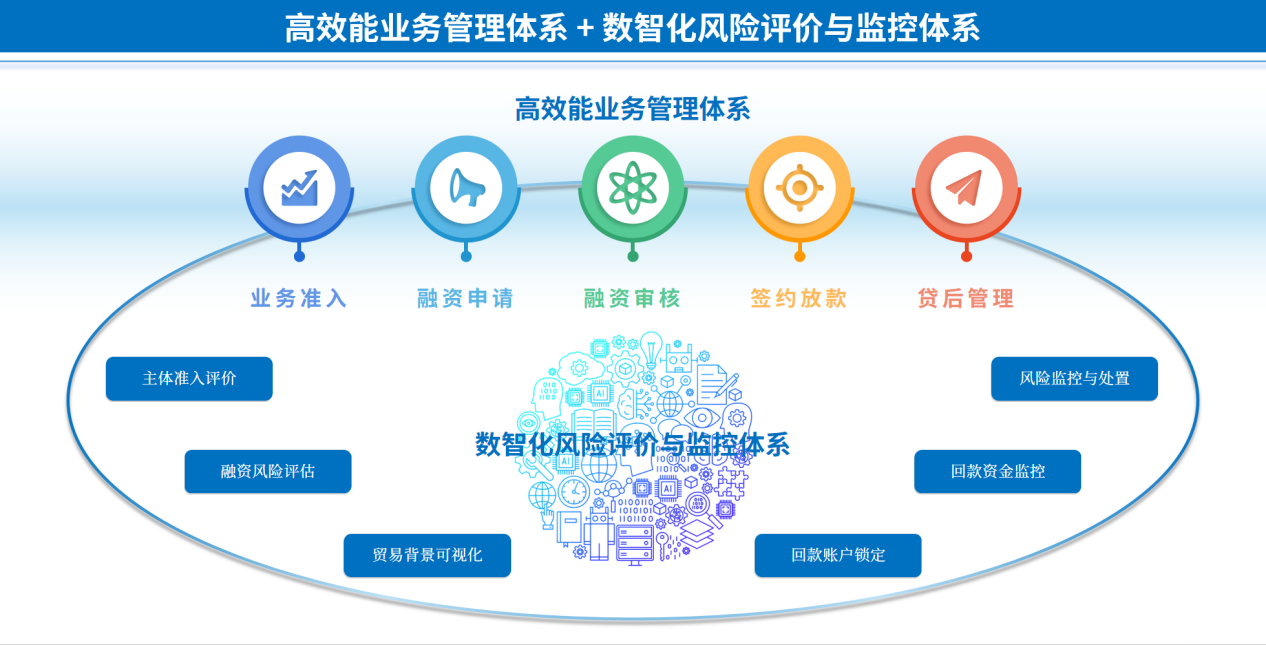 平台通过多元数据获取与治理,实现贸易背景真实性核验、生产经营可视化、回款账户锁定与资金流监控、动态风控模型。