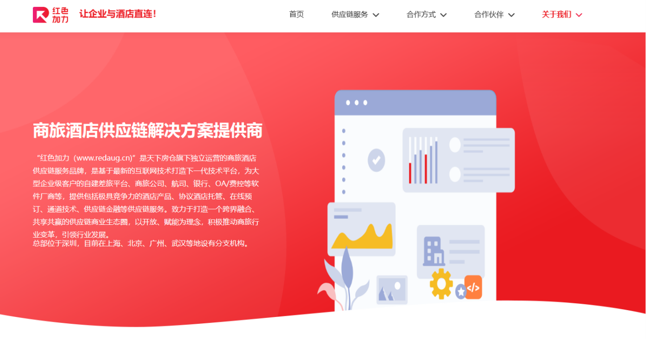 差旅出行是企业业务拓展的刚需,传统报销模式往往需要员工垫资,报销流程繁琐,耗费企业内大量财务人员成本与精力,为提升员工体验,降低传统报销的管理成本,越来越多的大型集团企业选择集中式的差旅管理服务。基于行业痛点,天下房仓打造旗下“红色加力”平台,帮助企业通过系统直接对接酒店。